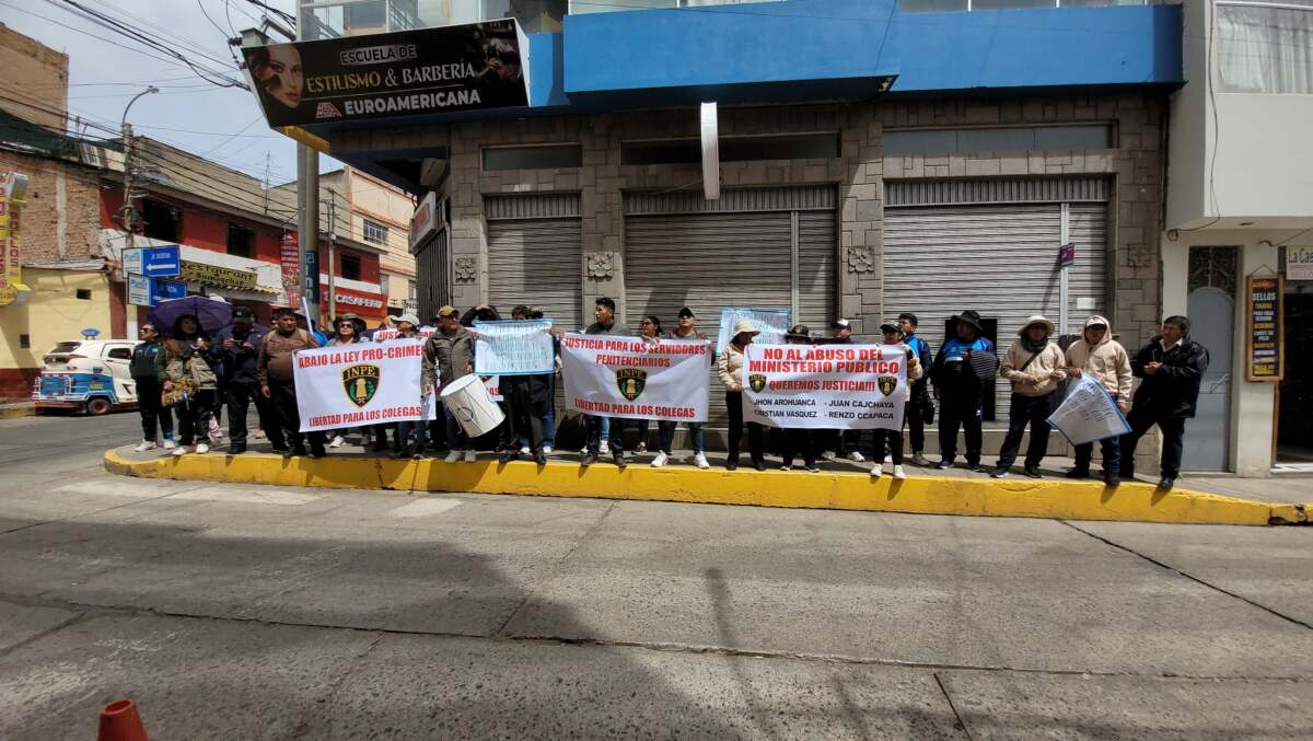 Puno, 16 de diciembre 2025 – Por segundo día consecutivo, trabajadores del Instituto Nacional Penitenciario (INPE) realizaron una protesta en la ciudad de Puno en rechazo a la detención de cuatro agentes penitenciarios, acusados por la Fiscalía de Derechos Humanos de presuntamente torturar a un interno del penal de Puno. Los manifestantes denunciaron presuntas irregularidades en la actuación fiscal, vulneración del debido proceso y advirtieron que, de no obtener una respuesta concreta de las autoridades, el sindicato penitenciario podría iniciar una huelga nacional.