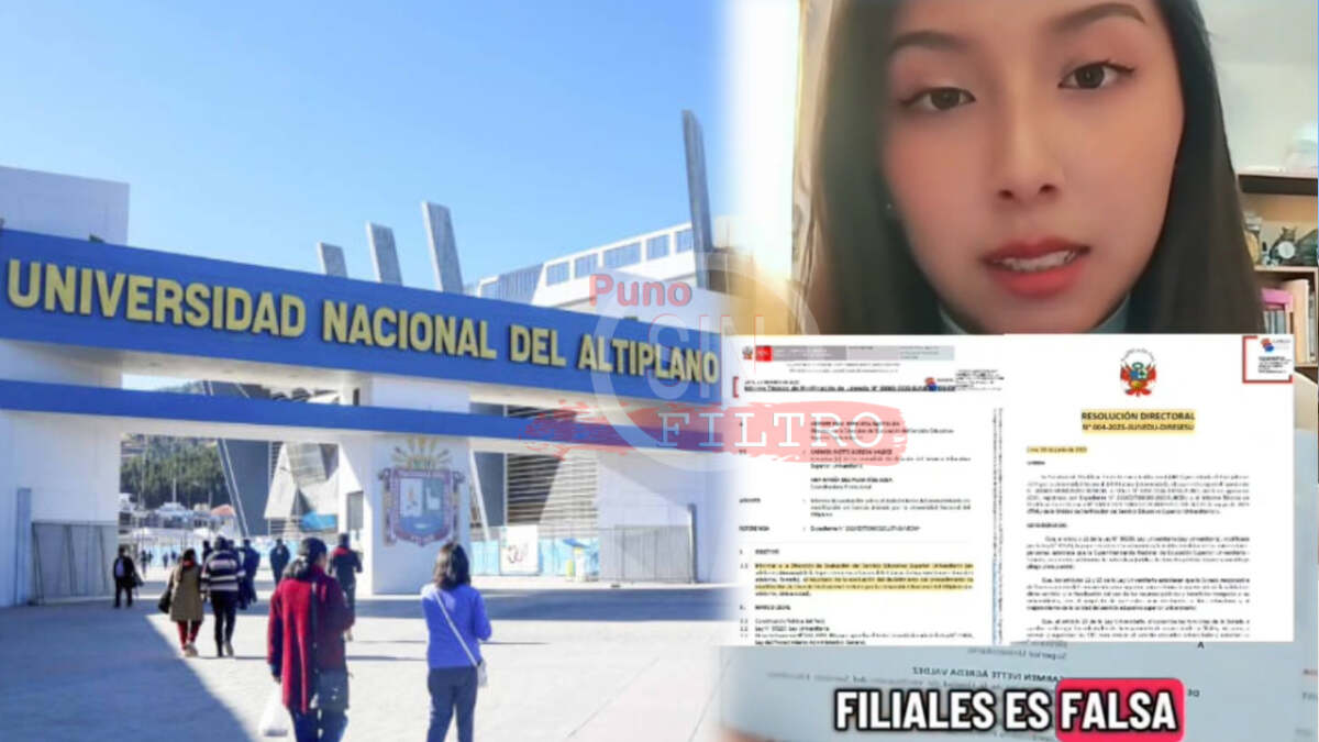Puno – La existencia de las filiales de la Universidad Nacional del Altiplano (UNA) en Azángaro y Chucuito-Juli fue puesta en cuestión tras la denuncia pública de la estudiante de Enfermería y asambleísta universitaria, Kimberly Chávez Chalco, quien aseguró que dichas sedes nunca fueron autorizadas por la Superintendencia Nacional de Educación Superior Universitaria (SUNEDU).