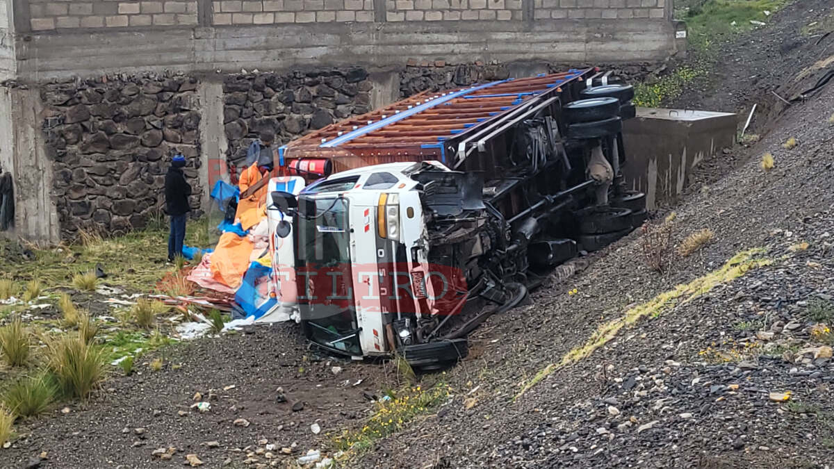 Puno, 26 de diciembre 2025 – Un camión fuso de placa M2C-896, que transportaba carne de cerdo con destino a la ciudad de Juliaca, se despistó y terminó volcando a la altura del óvalo ubicado en el desvío a Tiquillaca, en el centro poblado de Alto Puno, pasando el establecimiento penitenciario.