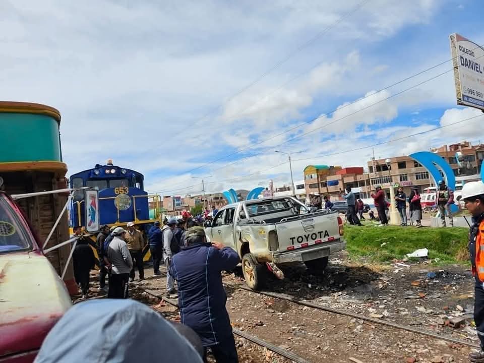 Juliaca, San Román, Puno – El accidente se registró esta mañana en la ciudad de Juliaca, involucrando una camioneta y un tren de pasajeros. El incidente ocurrió en el cruce de la Cooperación Popular con la línea férrea.