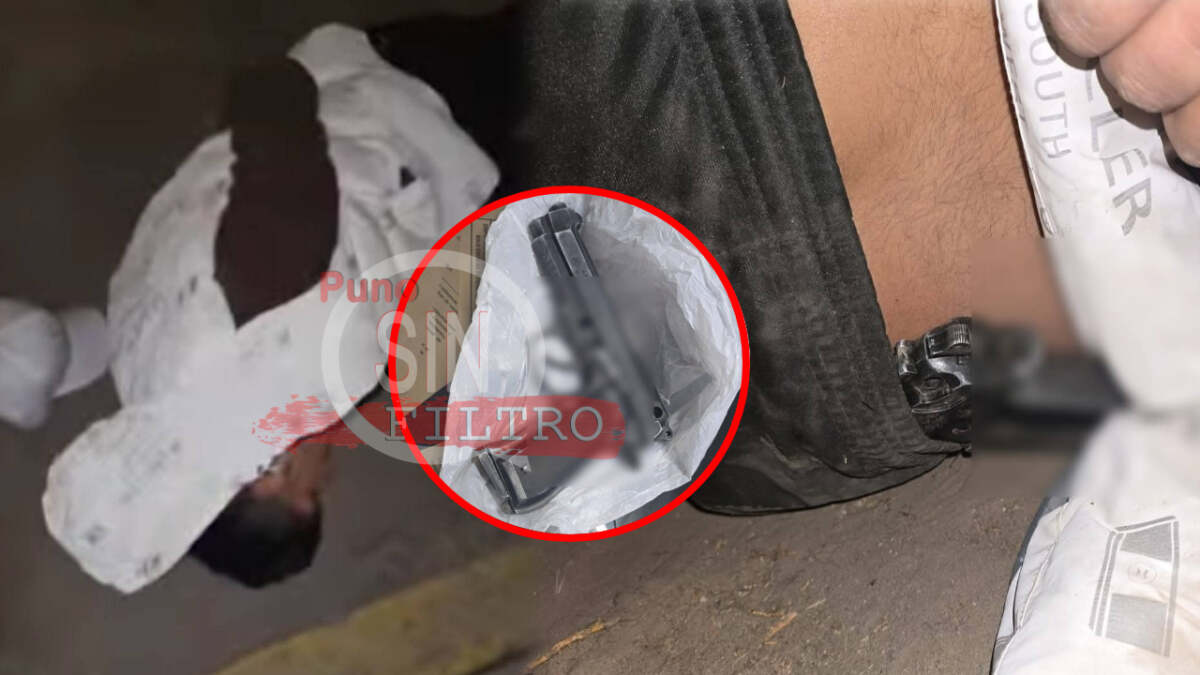 Durante el registro personal, se le halló un arma de fuego tipo pistola con cacerina y número de serie limado, la cual estaba oculta en la parte posterior de su pantalón. Según las primeras indagaciones, el detenido pertenecería a una banda dedicada a cometer robos al paso bajo la modalidad del descuido.