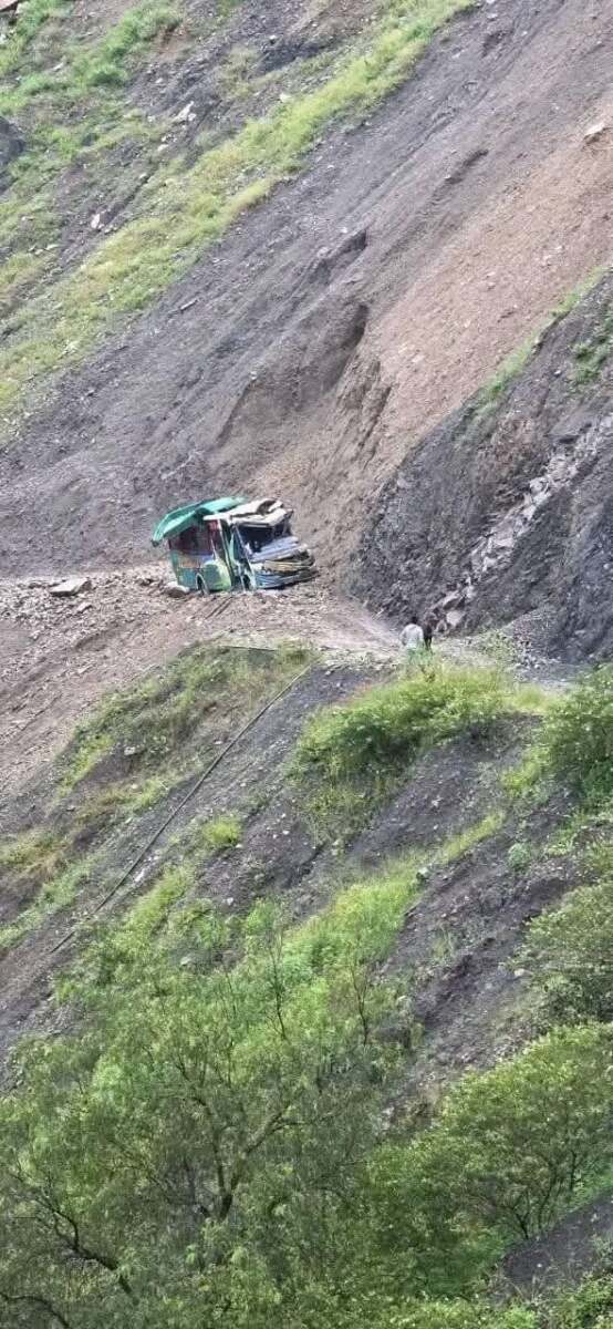 Charat, Otuzco, La Libertad– Un microbús de la empresa Turismo JK se vio afectado por un derrumbe en la carretera que conecta Cerro Blanco con Callancas, en el distrito de Charat. El incidente ocurrió labtarde de ayer sábado, cuando una avalancha de rocas impactó el vehículo.