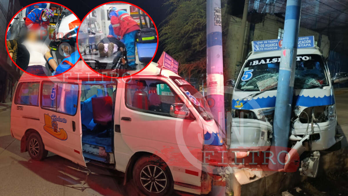 Puno – Un aparatoso accidente de tránsito se registró la noche de ayer domingo en el barrio Huáscar de la ciudad de Puno, cuando una combi de servicio urbano de la empresa Balceritos, Línea 5, con placa Z2D-305, terminó empotrada contra un poste de alumbrado público a pocos metros de la comisaría de la jurisdicción.