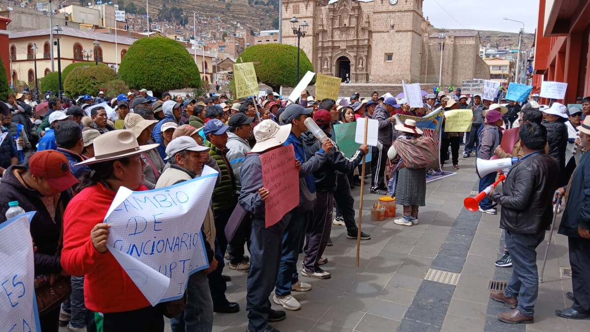 Puno – La situación en el Mercado Bellavista de Puno se ha tornado tensa. Los comerciantes del mercado protestaron frente a la Municipalidad Provincial, exigiendo una solución definitiva a la ocupación de espacios por parte de «ambulantes».