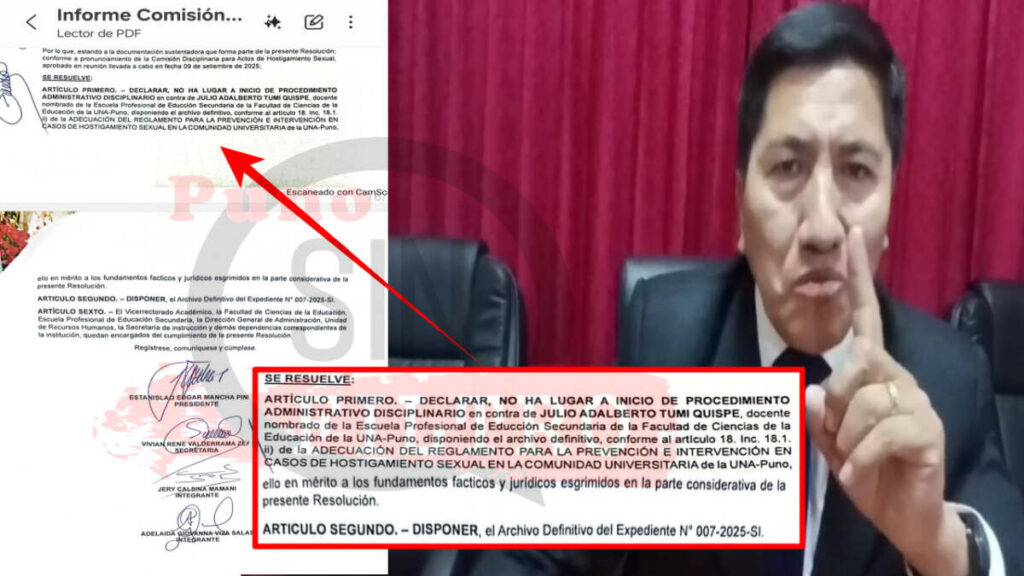 La situación despierta preocupación dentro de la universidad. Pese al archivo, se confirmó que el docente continúa laborando mientras se desarrollan investigaciones paralelas en la Unidad de Investigación de la UNA Puno y en el Ministerio Público.