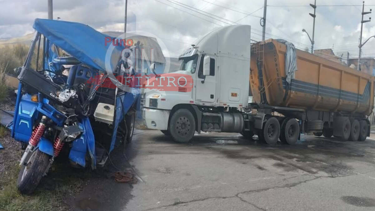 Santa Lucía, Lampa, Puno – Cuatro personas resultaron heridas tras un accidente de tránsito ocurrido en Santa Lucía, Lampa, Puno. Un tráiler con placas BEL-853 (tracto) y TLL-993 (carreta), conducido por Carlos Felipe Suna Merma (63 años), impactó contra una mototaxi azul de placa 6174-FZ, cerca del cementerio central y el campo ferial.
