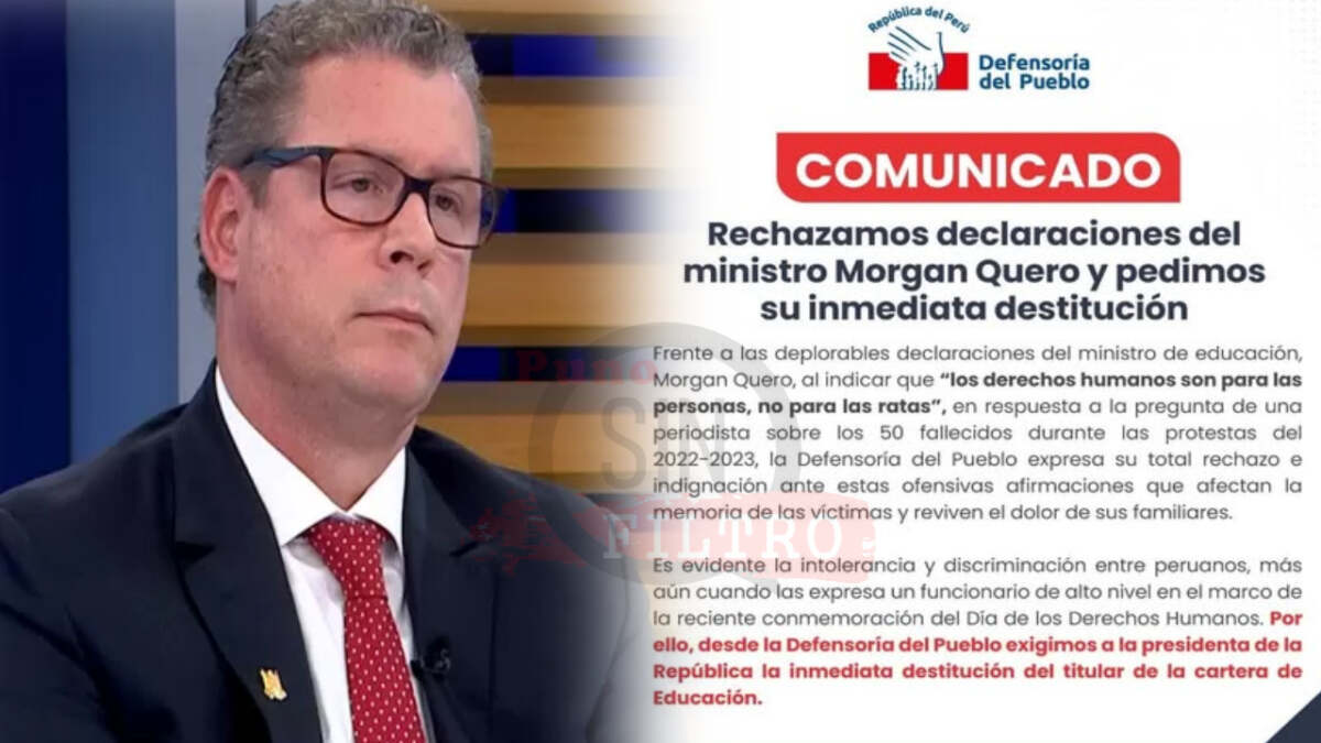 Lima – La Defensoría del Pueblo solicitó la destitución del Ministro de Educación, Morgan Quero, tras sus controvertidas declaraciones sobre los derechos humanos. En respuesta a una pregunta sobre las muertes ocurridas bajo el actual régimen, el ministro afirmó que «los derechos humanos son para las personas, no para las ratas».