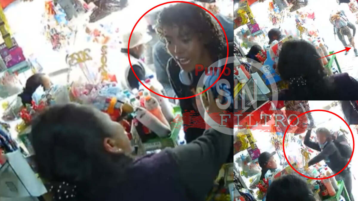 Puno – Una pareja de extranjeros intentó robar una tienda de abarrotes, donde también funciona como agente bancario. La pareja de «mochileros» habría ingresado con el pretexto de realizar una recarga para celular, pero se observa el forcejeo con la dueña del negocio, quien empieza a gritar mientras que la mujer (extranjera) simuló no estar involucrada. Incluso encara a su víctima, reclamando «de que robo habla».