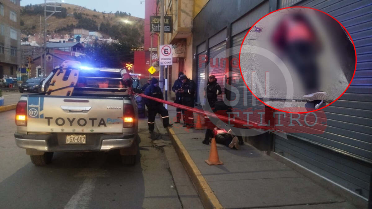 Puno – Un hombre fue encontrado sin vida esta mañana en la esquina de los jirones Cahuide y Alfonso Ugarte en Puno. Miembros del Serenazgo acudieron al lugar y confirmaron la ausencia de signos vitales. Los rastros de sangre en la escena sugiere la posibilidad de un asalto o agresión previa.