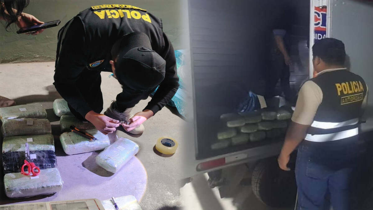 Según informó la policía, gracias a labores de inteligencia se detectó que el furgón, de placa ATZ-73Y, habría sido modificado internamente con una estructura metálica oculta. Durante el registro, al realizar el corte correspondiente en la base de la caja de carga, se halló un costal de rafia azul que contenía 15 paquetes rectangulares tipo ladrillo, con un peso bruto total cercano a los 16 kilos.