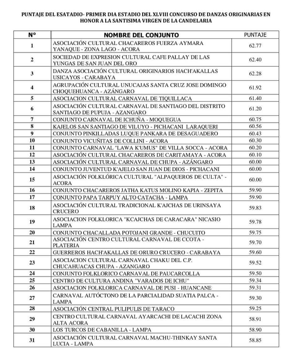 Cabe destacar que en la categoría de Ayarachis, el único conjunto inscrito fue descalificado.