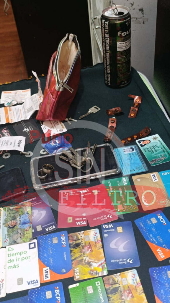 El agraviado relató que, mientras compartía bebidas con un amigo, la dueña del local y el encargado de seguridad lo registraron y le sustrajeron su celular Note Pro 13, una tarjeta del Banco de Crédito y dinero en efectivo por un total de S/7,050. Durante la intervención, la Policía halló los objetos robados dentro de una refrigeradora en la habitación de Ana Magali Llacta Matos, junto con documentos y tarjetas pertenecientes a otras personas.