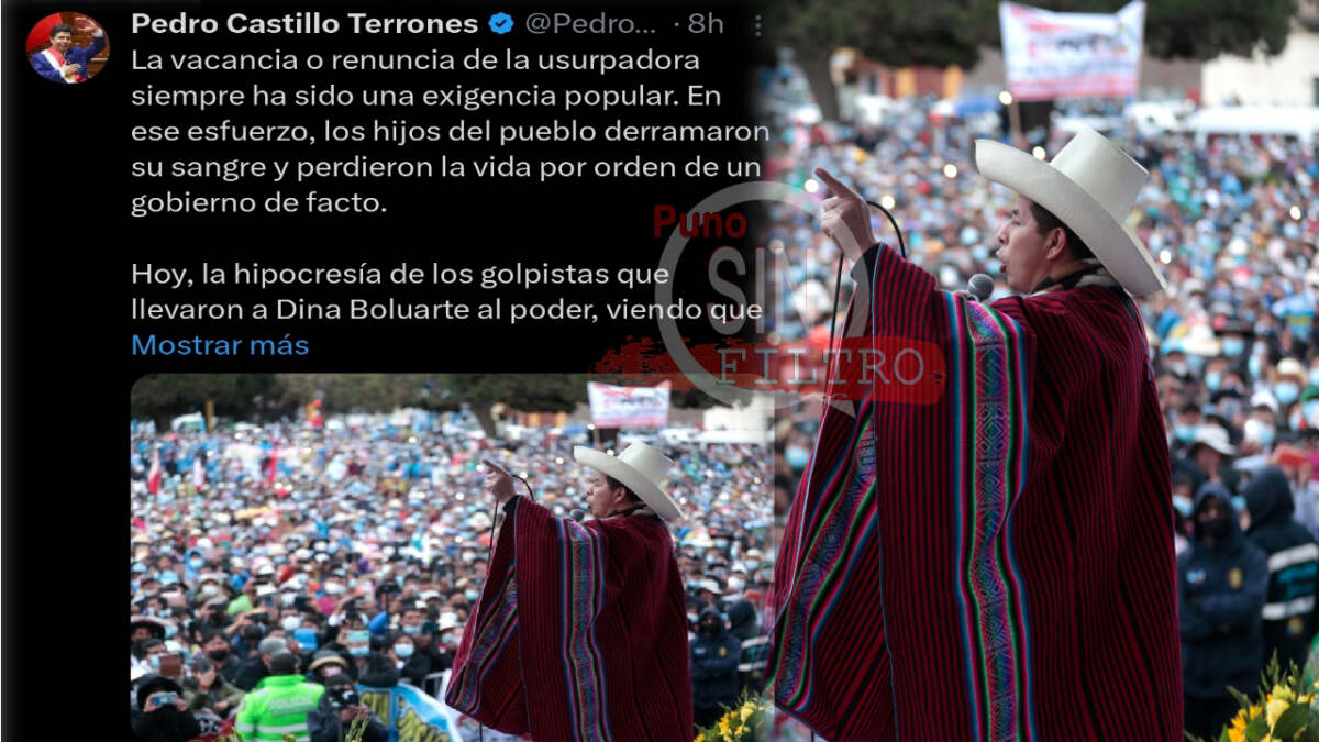 En su publicación, Castillo Terrones sostuvo que “la vacancia o renuncia de la usurpadora siempre ha sido una exigencia popular” y recordó que “en ese esfuerzo, los hijos del pueblo derramaron su sangre y perdieron la vida por orden de un gobierno de facto”.