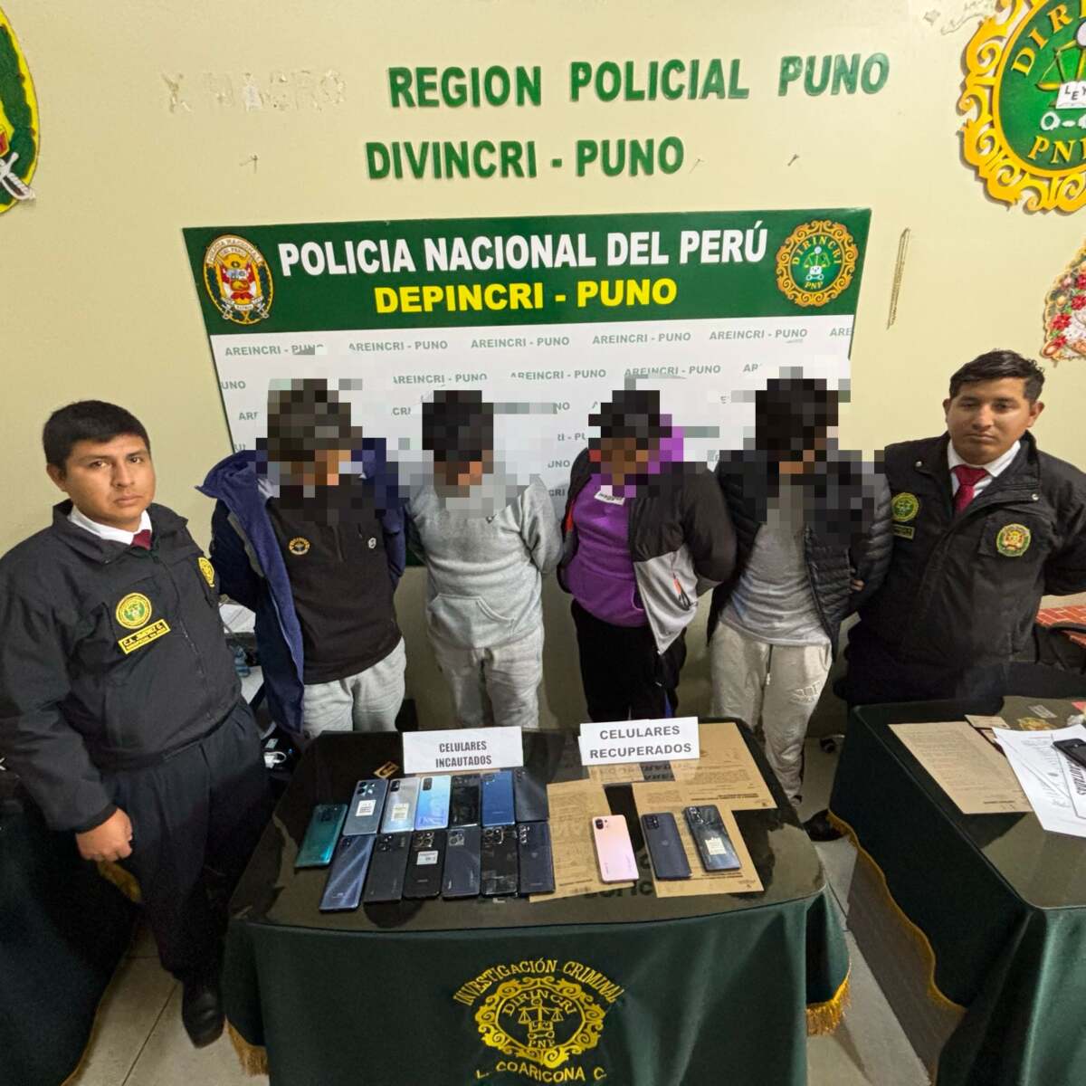 Agentes de la Policía Nacional del Perú logró desarticular la banda criminal autodenominada «Los Acopiadores de Simón Bolívar» en un operativo realizado en la Av. Simón Bolívar 219, Puno.