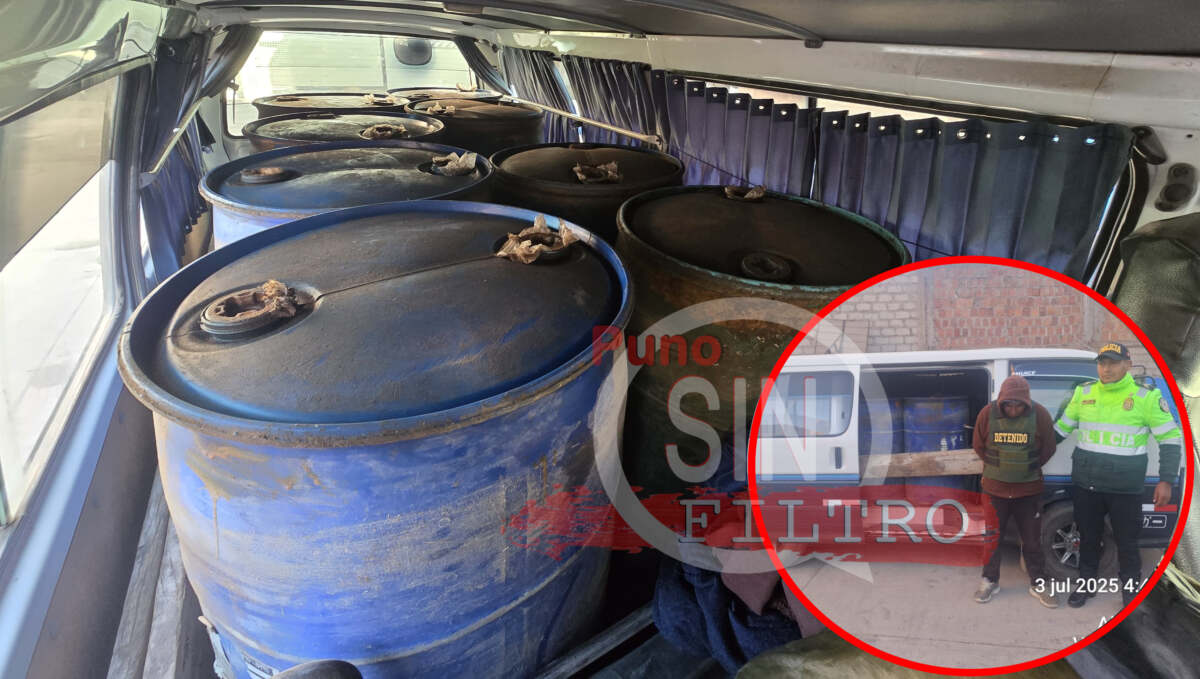 Se trata de una camioneta Toyota Hiace, color blanco, con placa Z7E-930, conducida por Edwin Plácido Aquino Laura (32), natural de Desaguadero. Al realizar la inspección preliminar, los agentes hallaron ocho barriles plásticos de 200 litros cada uno, conteniendo en total 1600 litros de petróleo, presuntamente procedente del vecino país de Bolivia.