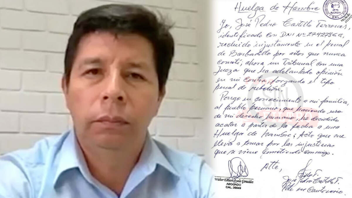 En la carta, Castillo afirma: “Pongo en conocimiento a mi familia, al pueblo peruano que, haciendo uso de mi derecho humano, he decidido acatar a partir de la fecha una huelga de hambre, acto que me lleva a tomar por las injusticias que se viene cometiendo conmigo”.