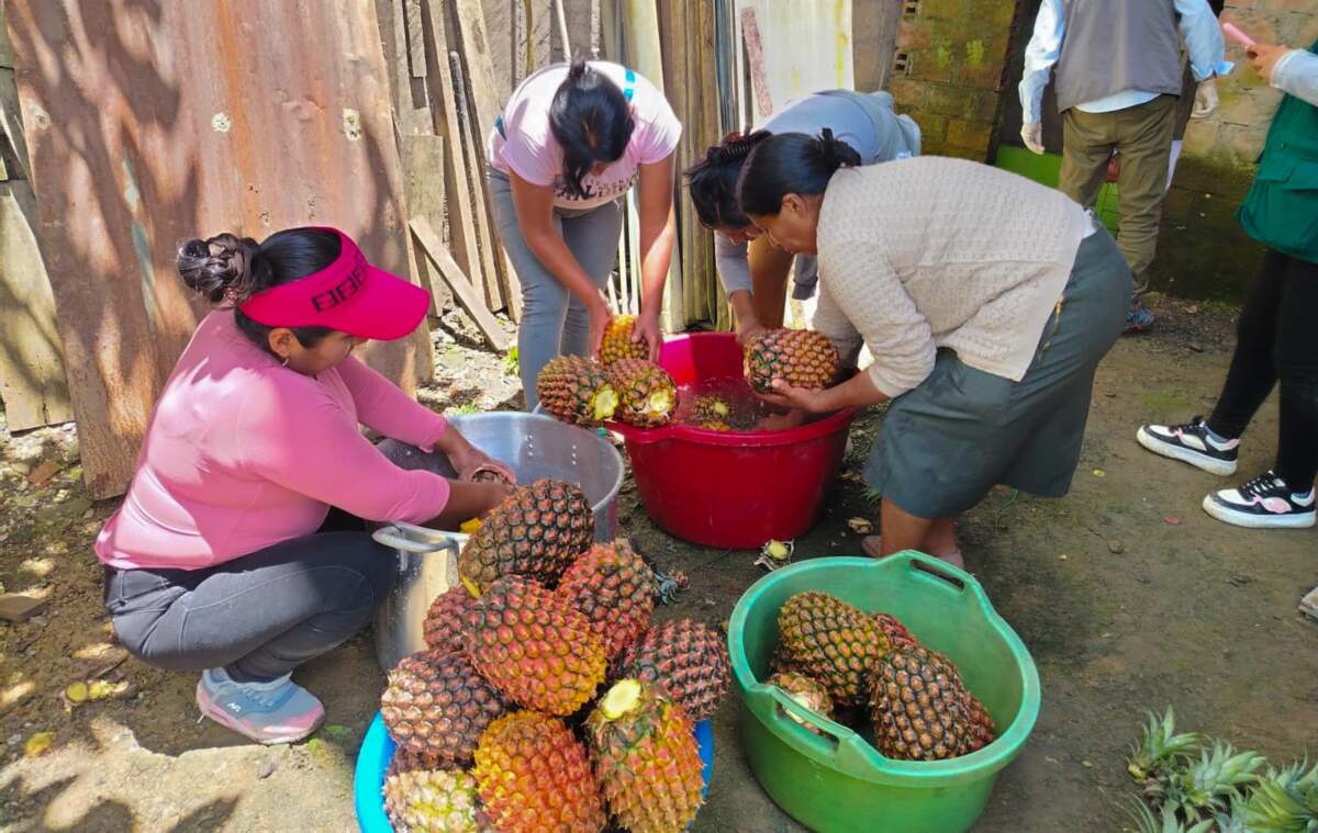 Puno, 12 noviembre 2025 – Agricultores del distrito de Yanahuaya, en la provincia de Sandia, vienen dando pasos hacia la transformación de sus cultivos con la elaboración de productos derivados de la piña, una fruta de alta producción en esta zona de la selva puneña.