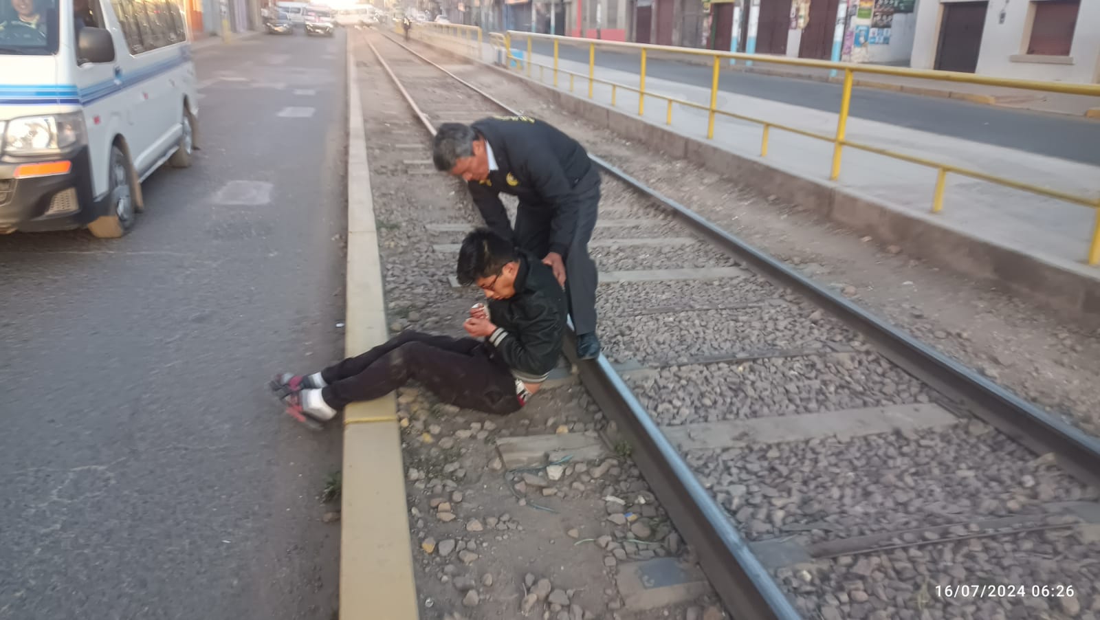 SERENAZGO RESCATA A JOVEN QUE DORMÍA EN LAS RIELES DEL TREN, LO EVACUARON AL HOSPITAL POR HERIDAS EN LA CABEZA