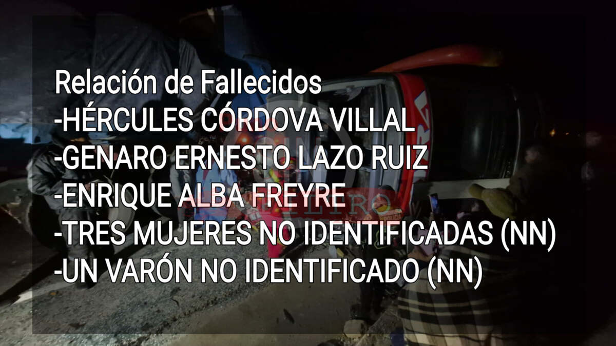 Además, tres mujeres y un varón permanecen aún sin identificar, tras quedar atrapados entre los fierros retorcidos de las unidades siniestradas.